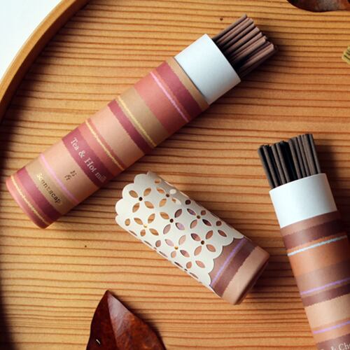 上蓋を逆さにし、パッケージ外側の白巻紙を上蓋にかぶせると、お香を入れる可愛らしいお香ホルダーとしてお使いいただけます。